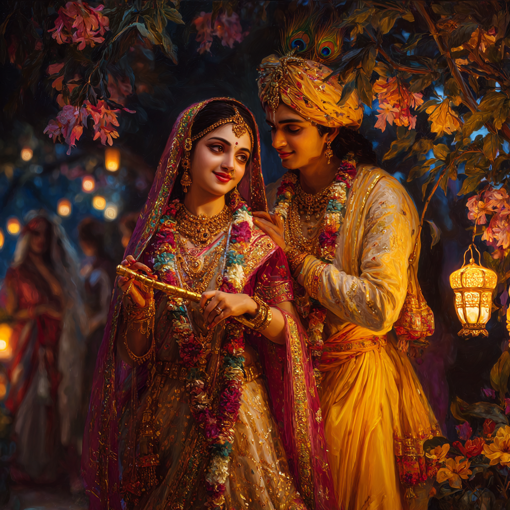 A beautiful devotional artwork depicting Lord Krishna Playing Flute.