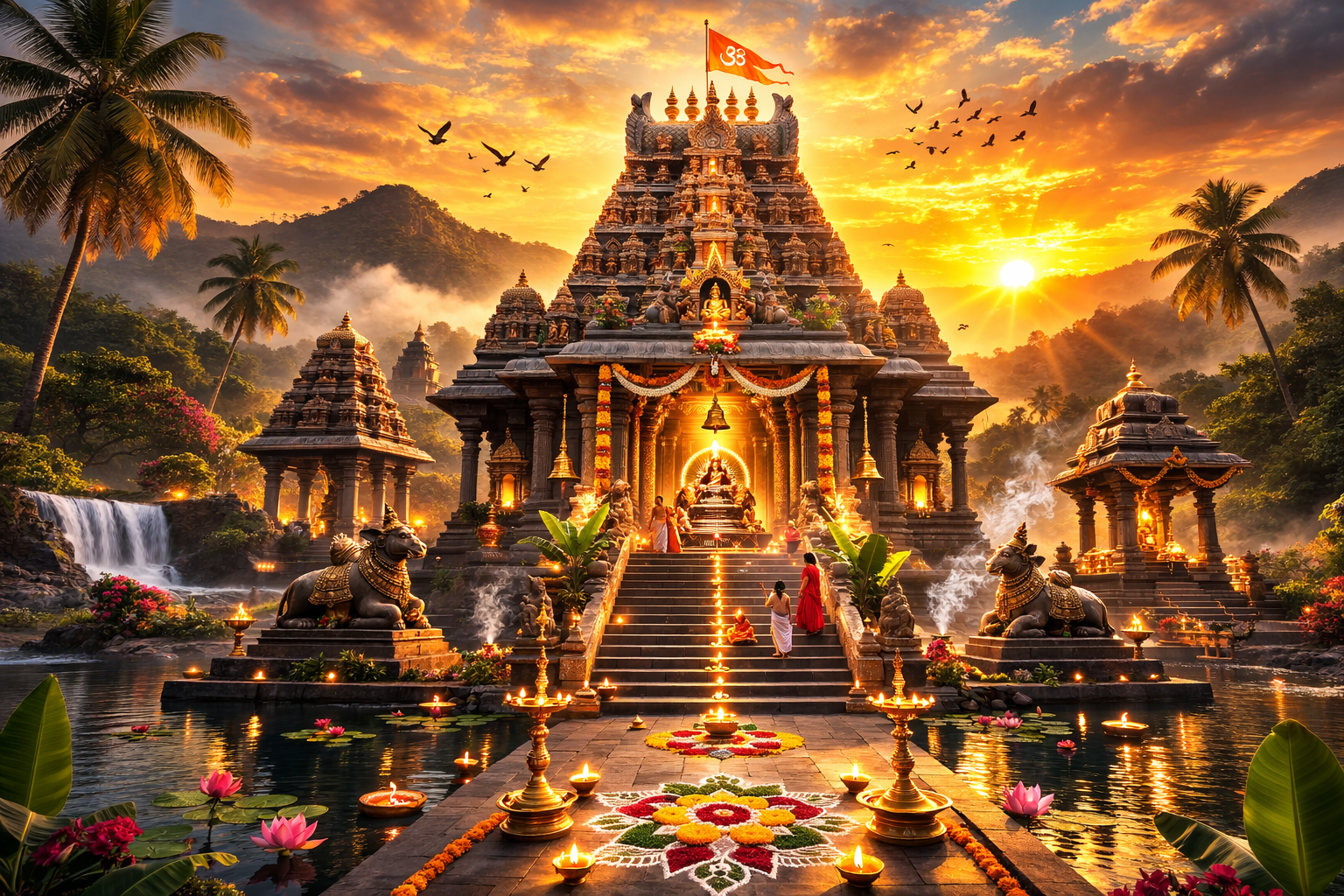 A beautiful devotional artwork depicting Temple at Sunrise Photography.